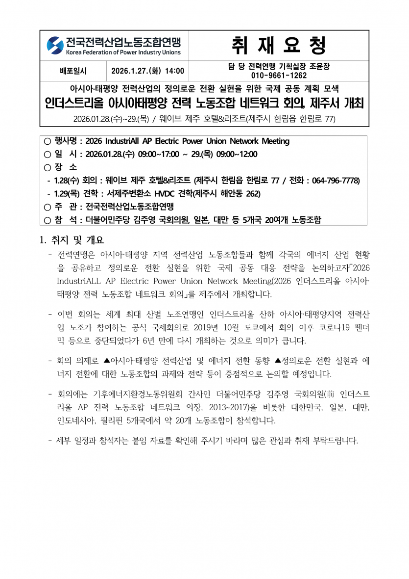 전국전력산업노동조합연맹은 이용자의 편의를 위하여 쿠키를 운영합니다. 전국전력산업노동조합연맹이 쿠키를